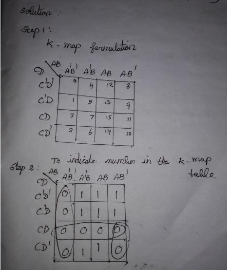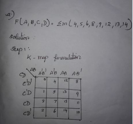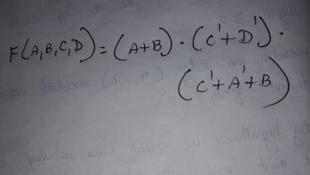 Consider the function F(A, B, C, D) = sigma m(4, 5, 6, 8, 9, 12, 13, 14): a. Find the minimal product-of-sums form of the function. b. Using Quartus, create a single schematic where you represent the POS function as a circuit using AND gates, OR gates, and inverters, and as a circuit using NOR gates and inverters. You may use AND gates, OR gates, and NOR gates having any number of inputs. Connect the inputs of both circuits to the same set of input pins, but name the outputs differently (F1 and F2). c. Simulate the schematic containing your circuits, and verify that both circuits give the correct outputs.