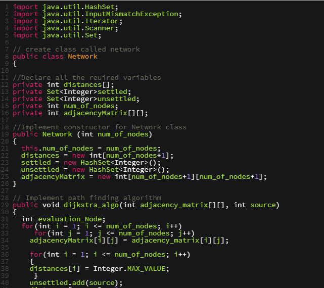 Create a Java class that implements a network. The class must include the following functions: