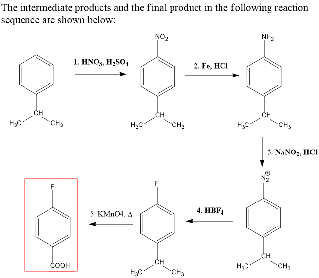 E) . HNO. H2SO 2. Fe. HCI 3. NaNO2 HCI 4. HBF4 5. KMnO4-Δ CHICH3)2